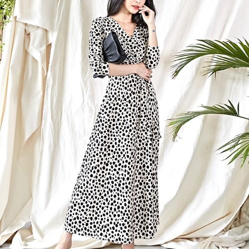 ワンピース レディース ダルメシアン柄 白 マキシワンピース 長袖 カシュクール Scawi Cocounsecret 通販 Yahoo ショッピング